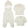 Riietus koosneb soojast ja pehmest OEKOTEX-sertifikaadiga puuvillasest kummist, T-särgist, rinnatükist ja mütsist. Pakendatud kaunisse karpi – ideaalne kinkimiseks või sünnitusmajja viimiseks esimese beebiriietena.