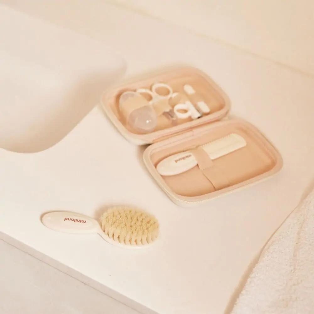 Visi kasdienės kūdikio higienos įrankiai vienoje, patogioje ir estetiškoje dėžutėje. Miniland „Mint“ – 6 dalių rinkinys, sukurtas nuo pirmųjų dienų iki darželio metų: švelniems plaukams, jautrioms dantenoms ir saugiai nagų priežiūrai. Vandeniui atsparus, pilnai atsiveriantis dėklas leidžia viską matyti iš karto ir palaikyti tvarką namuose bei kelionėse.