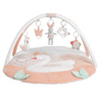 Pehme 3-D mängumatt Swan Lake on ideaalne esimene mänguväljak väikestele avastajatele. Selle mänguasjaga läheb pisike põnevatele avastusradadele, arendab kujutlusvõimet ning kompimis- ja kuulmismeelt ning teadlikkust põhjusest ja tagajärjest. Pehme kohev põhi ja 5 eemaldatavat mänguasja täidavad beebi suurepäraselt erinevatel kasvuperioodidel. Kõrist, kriuksuv mänguasi, kraapiv paber ja peegel ärgitavad beebi uudishimu. Kaunid rõngastes rippuvad mänguasjad on kergesti ligipääsetavad. Need aitavad arendada lapse teadlikku haaramist ja käe-silma koordinatsiooni. Kõristal on lõbus ragistada, samal ajal kui pallid sees keerlevad. Lillepeegel soodustab beebi mängulist eneseavastamist. Viis väikest mänguasja on paljudest kohtadest kergesti eemaldatavad ja kinnitatavad, nii et neid saab suurepäraselt kasutada ja riputada beebi võrevoodi kohale, kärusse, mähkimislauale jne. Pehmel, veluur- ja polsterdatud matil on ka erinevad mängufunktsioonid. Materjalid, tekstuurid ja pinnad pakuvad beebidele huvi, julgustavad neid puudutama, mängima ja õppima. 3-D alus ja pehmed värvid ei väsita last, kuid samas ergutavad beebi soovi beebit katsuda, haarata ja üllatada. Peegel sobib suurepäraselt kuku mänguks. Vibud on kergesti volditavad või volditavad, nii et teie beebi saab kasutada matti mängimiseks, lamamiseks ja istumiseks erinevatel kasvuetappidel.