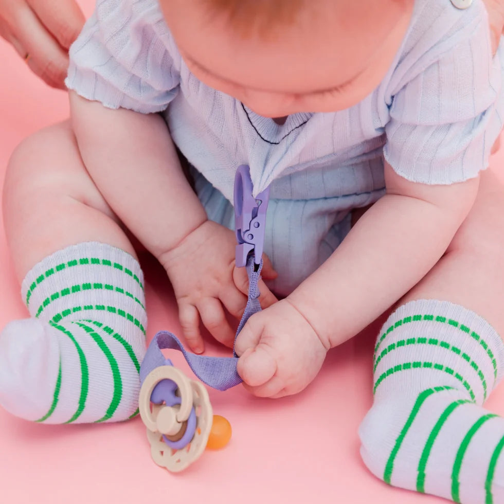 Lutiklambrit tuleb kasutada siis, kui teie laps on ärkvel ja tema järelevalve all. See on kinnitatud ainult riiete külge. Seda ei tohi kasutada, kui laps on võrevoodis, voodis või võrevoodis. Seda ei tohi kasutada mänguasjana ega närida. Ärge siduge seda ümber lapse kaela ega kasutage seda, kui laps on järelevalveta. Kontrollige hoolikalt enne iga kasutamist. Visake ära, kui ilmnevad esimesed kahjustuse või nõrkuse märgid. Ärge kunagi pikendage lutihoidjat! Ärge kunagi siduge nööride, paelte, paelte või lahtiste rõivaosade külge.
