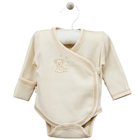 See valge puuvillane beebivann on Leedu tootja "Lorita" disainitud ja õmmeldud rõivas. Paljud emad, kelle pisipojad on suureks kasvanud, teavad, et selle brändi beebiriideid iseloomustab kvaliteet ja vastupidavus, seega ei valmista see valik kindlasti pettumust.