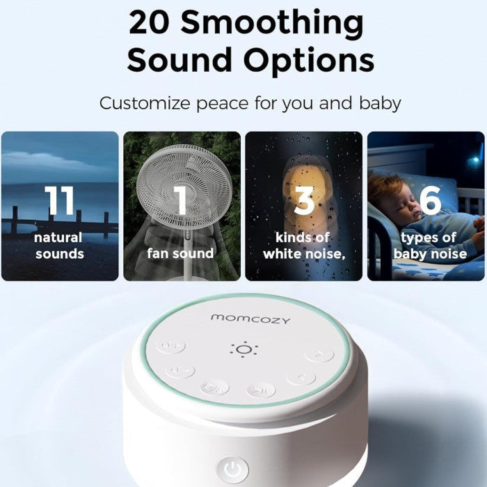 • Kaheksa kvaliteetset rahustavat heli: jooksev vesi, tugev vihm, südamelöögid, shh-shh heli, valge müra, kassi nurrumine, hällilaul ja kosmoseheli.