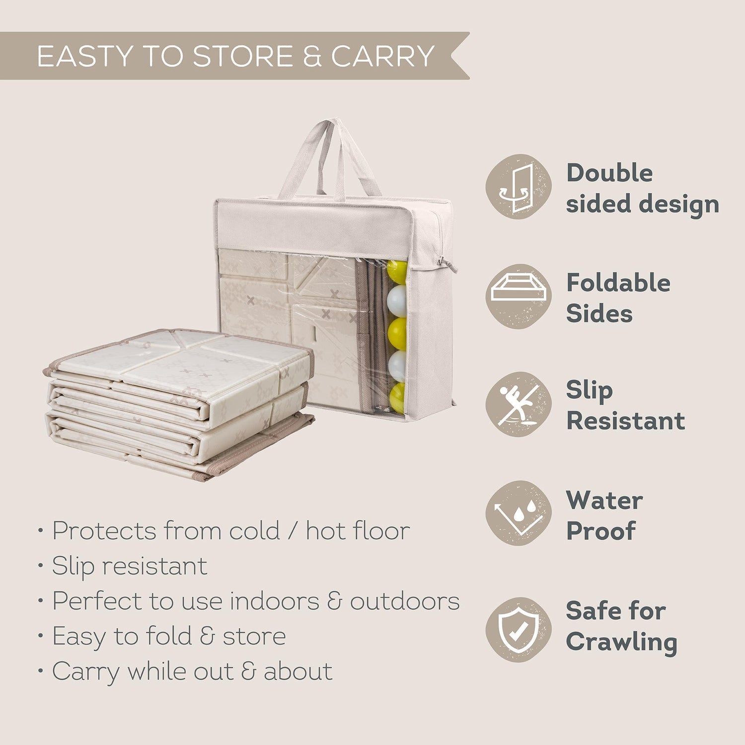 • aukštos kokybės tekstilinės medžiagos • minkštas, kūdikiui saugus paviršius • netoksiškas audinys • be BPA, PVC, ftalatų, švino ir gyvsidabrio